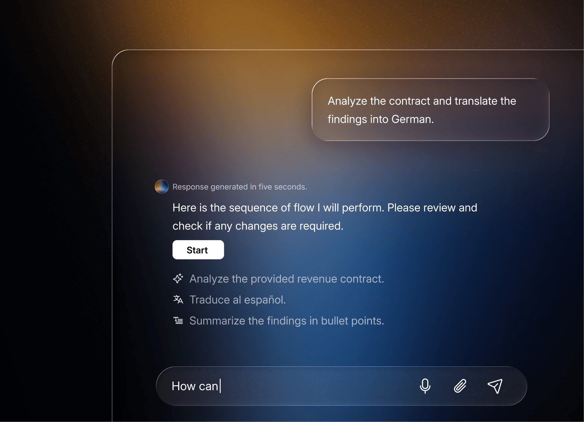 Trigger in-house or Kore.ai agents to run workflows across apps, systems, and teams using natural language.